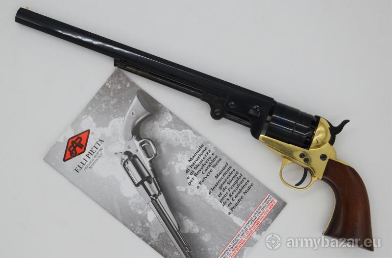 Opis: NOWY Rewolwer czarnoprochowy rozdzielnego ładowania. 1851 Colt Navy Rebnord Carbine Kaliber: .44 Długość lufy: 12 cali Producent: Pietta Na zakup i posiadanie tego przedmiotu nie jest wymagane zezwolenie. Sprzedaż wyłącznie osobie, która ukończyła 18 lat. Odbiór osobisty Warszawa/Piaseczno lub wysyłka po wpłacie.