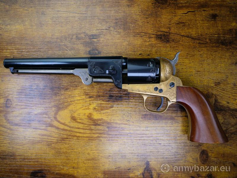 Opis: Rok produkcj: 1972 Osiowy Szczelina: 0.05mm Kaliber: .36 Pięknie grawerowany Mosiężny szkielet Stan idealny Zwany „szczytowym osiągnięciem” pod względem estetycznym, jak i mechanicznym, model 1861 Navy to jednen z najpiękniejszych, najbardziej starannie wykonanych i zrównoważonych rewolwerów czarnoprochowych, kiedykolwiek stworzonych. Choć ilość wyprodukowanych egzemplarzy była stosunkowo niewielka w porównaniu do innych "wielkich" modeli, takich jak Walker czy Dragoon, to jednak zdecydowana większość oficerów uczestniczących w Wojnie Secesyjnej wolała ten właśnie model. Można obejrzeć w Krakowie lub Warszawie lub wysyłka.