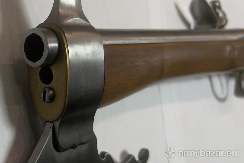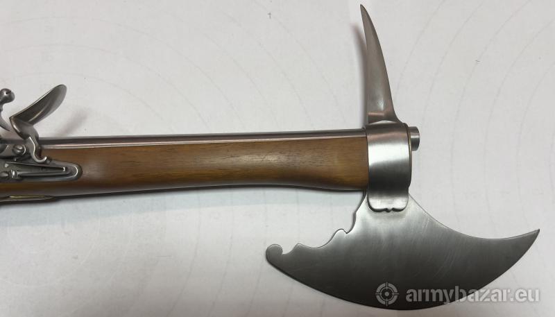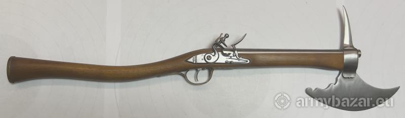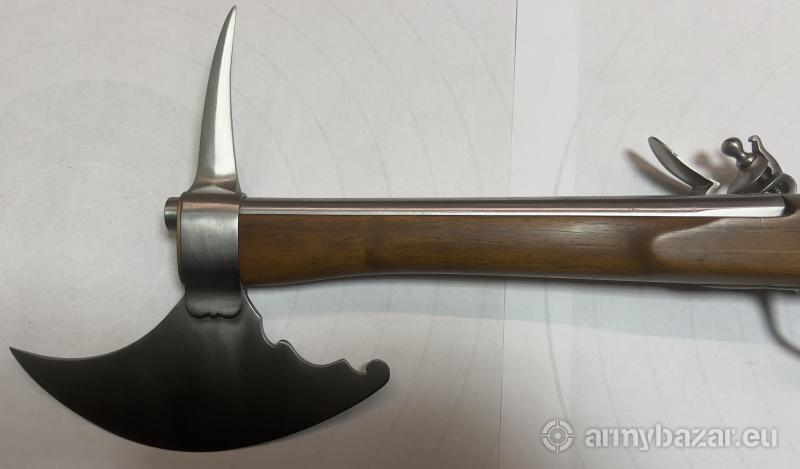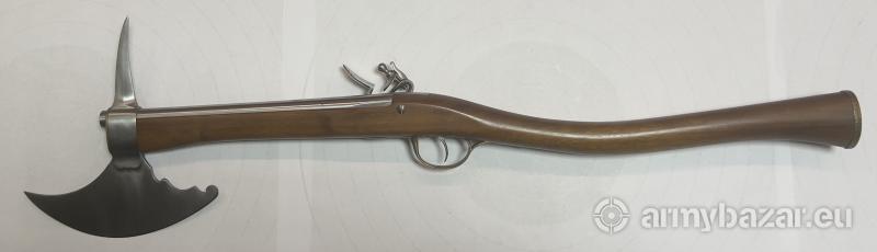 Opis: PISTOLET-TOPOREK Z ZAMKIEM SKAŁKOWYM KAL.12mm Współcześnie wykonana replika wzorem przypominająca toporek "pistoletu" z zamkiem skałkowym, lufowa gwintowana. Zamek skałkowy został wykonany zgodnie z oryginalnymi XVII wiecznymi zamkami. Całość w pełni sprawna, nadaje się do użytku przez miłośników takiej broni, bractw rycerskich itp. Oferowany pistolet jest rzadkim egzemplarzem prawdziwej użytkowej broni skałkowej w całości wykonanym ręcznie, repusowana mosiężna głowica. Pistolet zrobiony jest przez człowieka, który wykonuje repliki wszelkiej broni czarnoprochowej od 35 lat, ze szczególnym naciskiem na zachowanie wierności historycznej oryginalnym egzemplarzom starej broni.