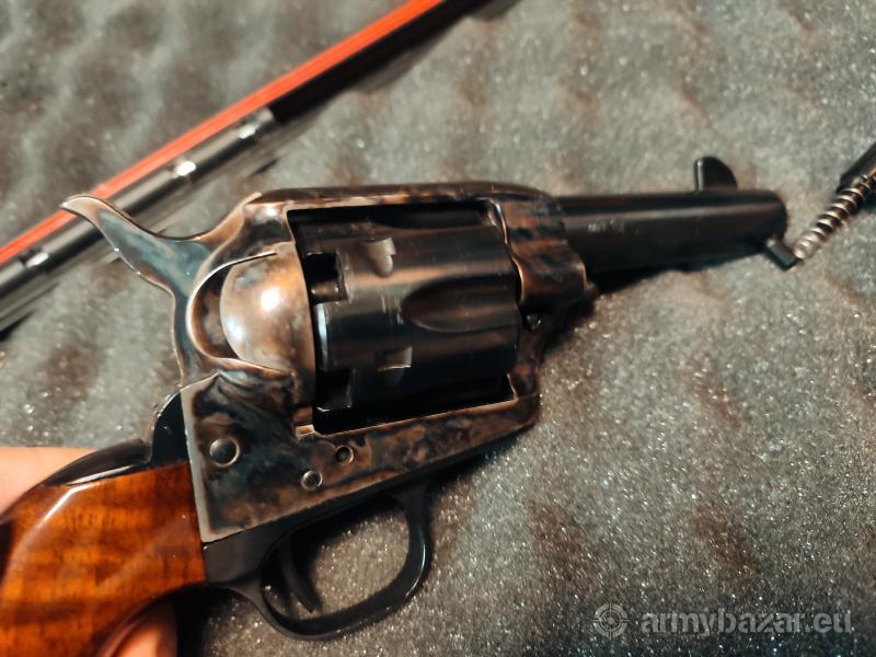 Opis: Cattleman .44 w wersji Birds Head, lufa 3 1/2'' , ogniowo hartowana stalowa rama, osłona spustu i okucia chwytu. Najbardziej poręczna rękojeść oraz niewielka długość lufy czynią z niego idealny rewolwer do szybkiego strzelania na małych dystansach Dane techniczne: Kaliber .44'' - długość lufy 3 1/2'' - skok gwintu 1-30'' Do zestawu za 250zł mogę dołączyć; -Montaż ris na lufę -Kluczyk do kominków wysokiej jakości -Saguaro arms średni smar do kul -Maszynka do patronów + bibułki -200szt sellier&bellot kapiszony -Polska prasa do bębnów - Waga cyfrowa ~0.01g - ~200 kul ołowianych .451 -Walizka wodoszczelna -zestaw do czyszczenia lufy -8 drukowanych 3D ładownic na kapiszony