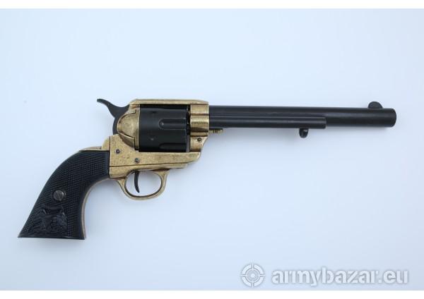 Opis: Replika rewolweru „Peacemaker” kaliber 45 pochodzi z 1873 roku. Replika jest wykonana ze ZnAlu. Colt posiada obrotowy bęben z sześcioma komorami nabojowymi . Bęben można obrócić bezpośrednio - odciągając kurek do pozycji pół naciągniętej lub obracany jest automatycznie przez mechanizm podczas napinania kurka do pozycji pełnej. Możliwość oddania tzw. suchego strzału. Więcej informacji na stronie: http://www.galeriareplik.pl/pl/colty/225-rewolwer-peacemaker-1873r-scolt-usa-denix-model-1109-l.html