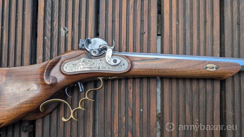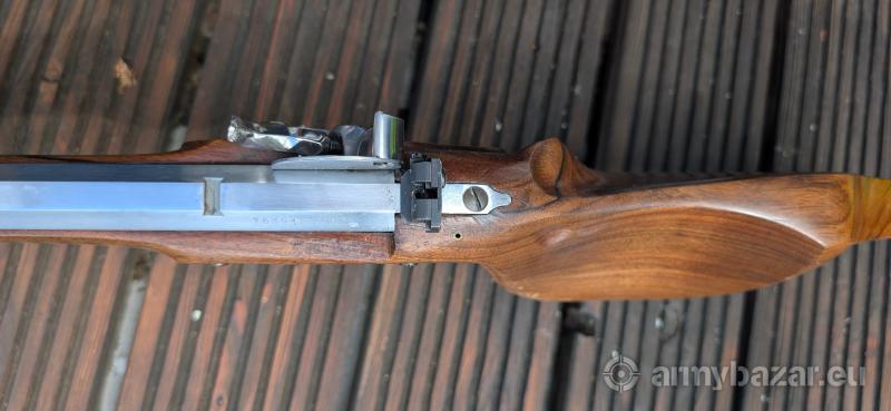 Opis: Karabin tarczowy Sanftl w kalibrze .45 Pedersoli wyposażony w regulowany diopter i przyspiesznik. Lufa czysta lustrzana. W pełni sprawny mechanicznie.