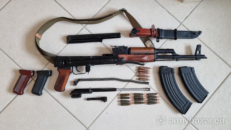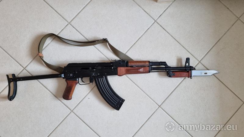 Opis: Sprzedam karabinek AKMS pozbawiony cech użytkowych wg. starych zasad - wszystkie części ruchome, całkowicie rozbieralny, można oddać "suchy strzał". Rok produkcji 1983. W zestawie: pas nośny, dwa magazynki, kilkanaście sztuk amunicji deko, bagnet 6H4, chwyt pistoletowy drewniany, czarny polimerowy i ebonitowy. Konieczność rejestracji w WPA.